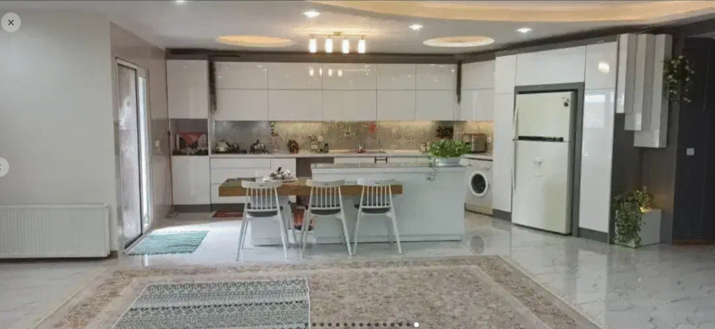 ⏺ کابینت هایگلاس، گاز صفحه ای، هود مخفی