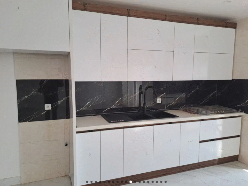 ⏺ کابینت هایگلاس، گاز صفحه ای، هود مخفی