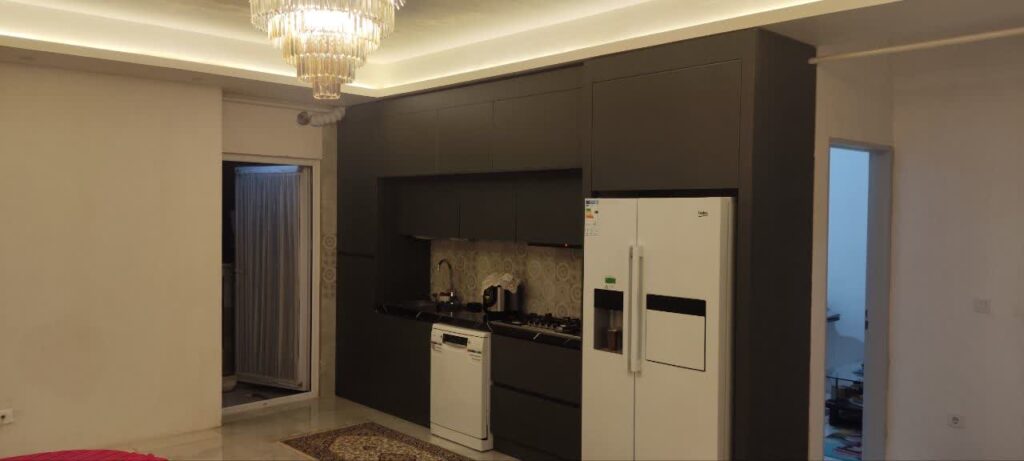 ⏺ کابینت ام دی اف، گاز صفحه ای، هود لمسی